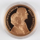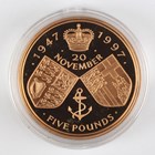 A scarce Elizabeth II Royal Mint gold proof five pounds crown 1997 celebrating the Golden Wedding Anniversary of Her Majesty The Queen and Prince Philip, deluxe-cased with certificate, No. 1020.