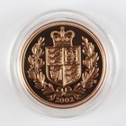 An Elizabeth II Royal Mint Brilliant Uncirculated gold five pounds 2002, deluxe-cased with certificate, No. 1441.