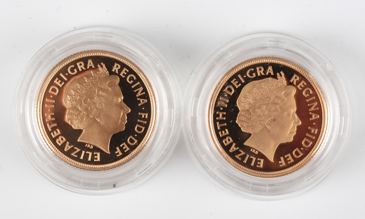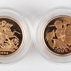 An Elizabeth II Royal Mint proof sovereign two-coin set, comprising 2004 and 2005, deluxe-cased with certificate, No. 331.