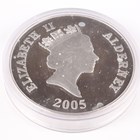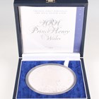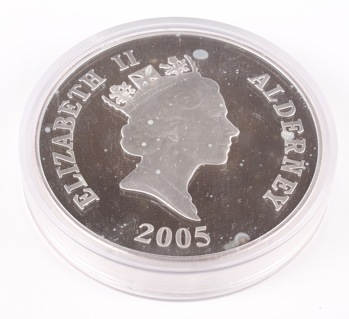 An Elizabeth II Royal Mint Alderney one kilo silver coin or fifty pounds 2005 celebrating HRH Prince Henry of Wales' Twenty-First Birthday, deluxe-cased with certificate, No. 001.