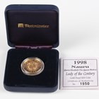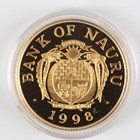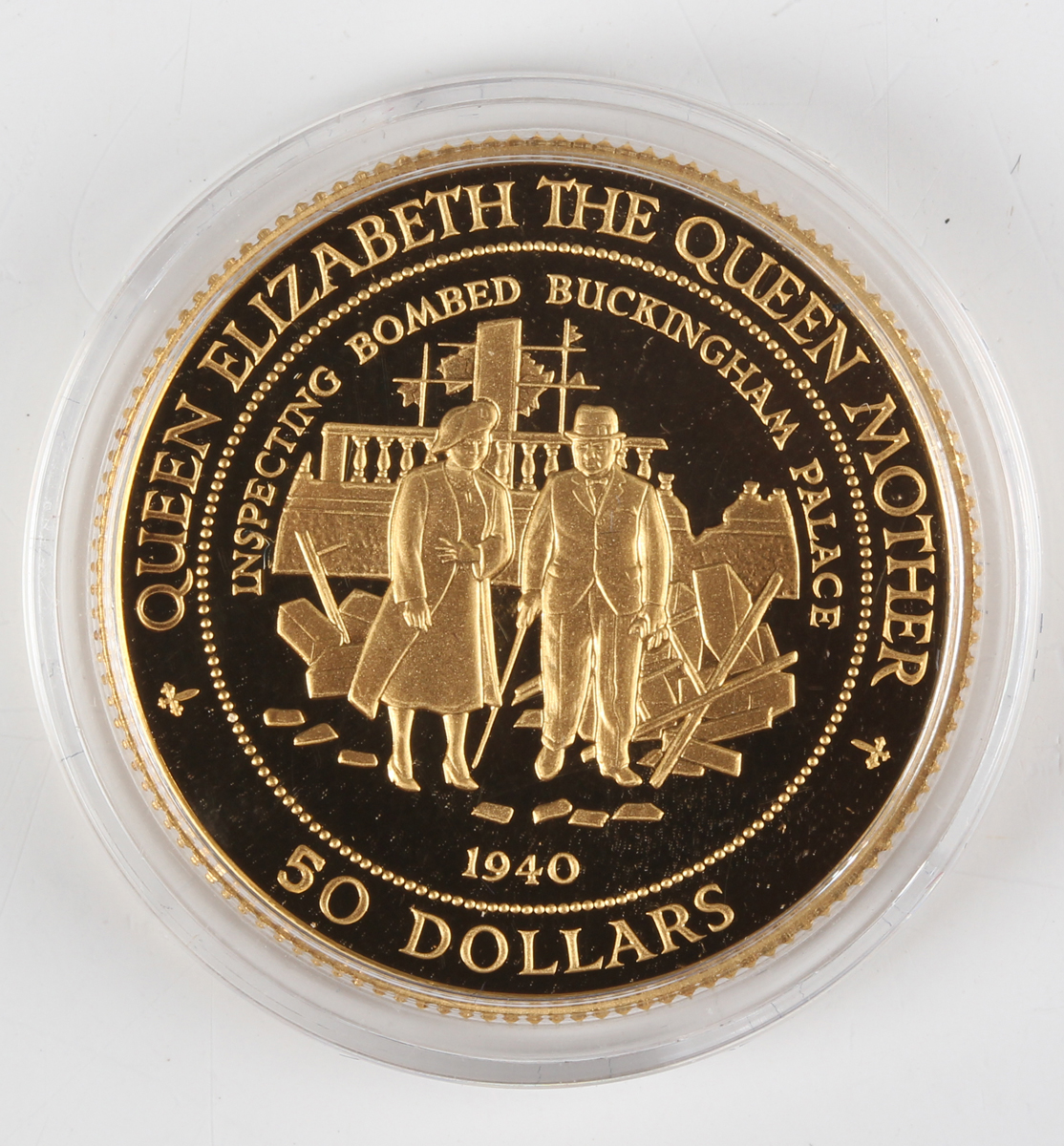 A Westminster Mint 14ct gold proof Bank of Nauru fifty dollars 1998 celebrating Queen Elizabeth The Queen Mother 'Lady of the Century', cased with certificate, No. 1950.