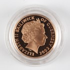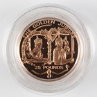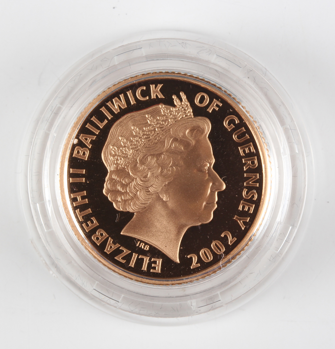 An Elizabeth II Royal Mint gold proof Bailiwick of Guernsey twenty-five pounds 2002 celebrating the Golden Jubilee, cased with certificate, No. 0375.