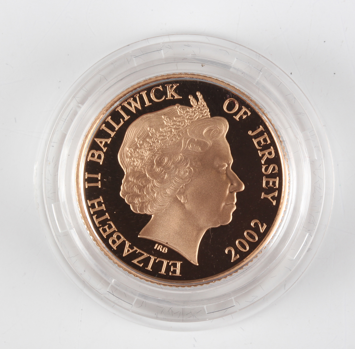 An Elizabeth II Royal Mint gold proof Bailiwick of Jersey twenty-five pounds 2002, cased.