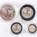 An Elizabeth II Royal Mint Britannia Collection silver proof four-coin set 2001, deluxe cased with certificate.