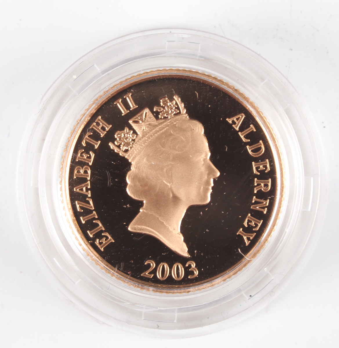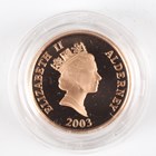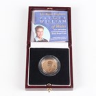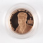 An Elizabeth II Royal Mint gold proof commemorative coin 2003 celebrating the 21st Birthday of His Royal Highness Prince William of Wales, cased with certificate.