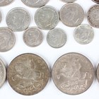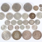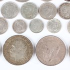 A collection of pre-1947 British silver nickel coinage, including five George V crowns 1935 and two George VI crowns 1933.