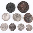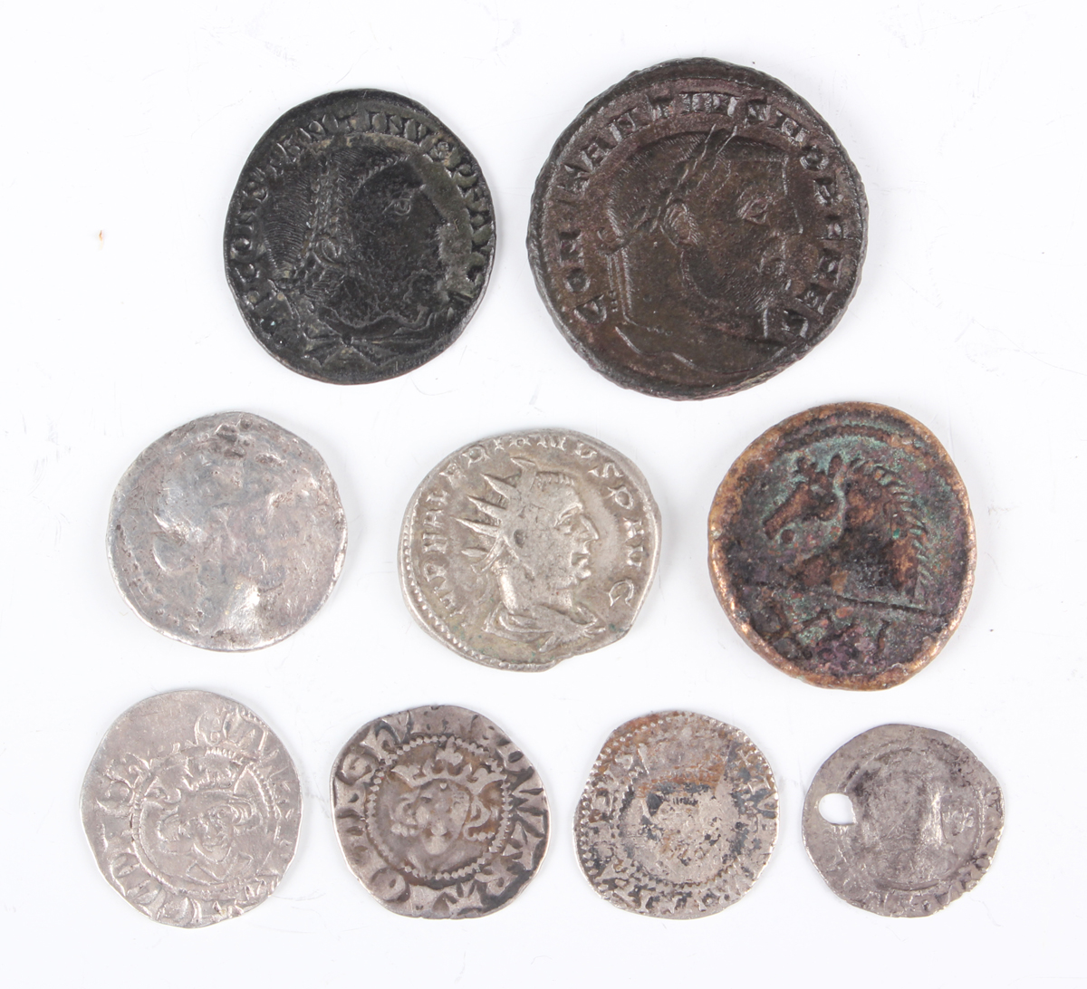 A small group of ancient and later coinage, including a Roman Empire Constantius I follis 293-305 AD, reverse with Carthage standing left, Carthage Mint, a modern cast silver forgery of a Junius Brutus denarius and an Edward I hammered silver penny, London Mint.