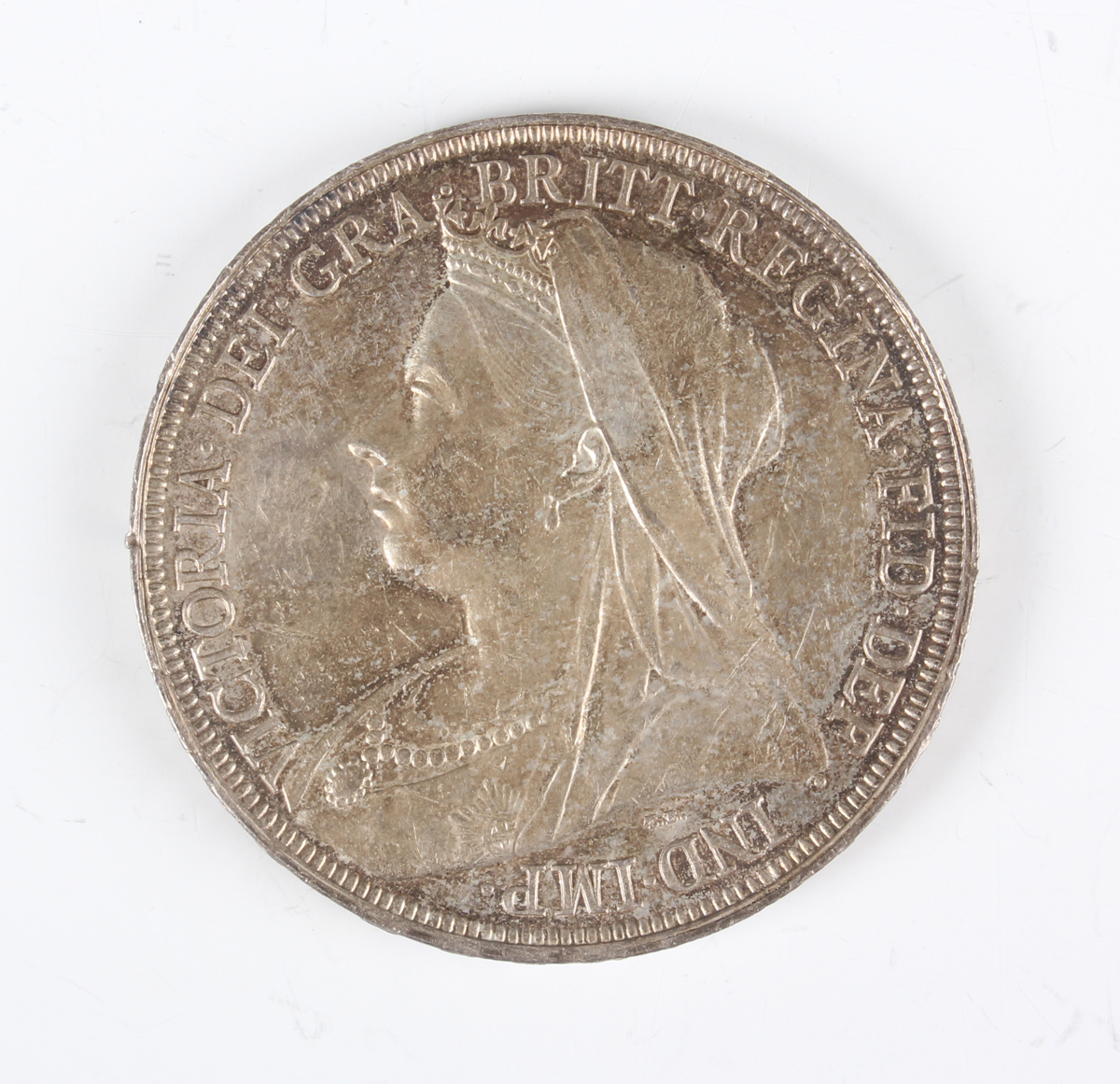 A Victoria Veiled Head crown 1895, edge detailed 'LIX' with star stop (extremely fine-uncirculated, toned with some rainbow iridescence).