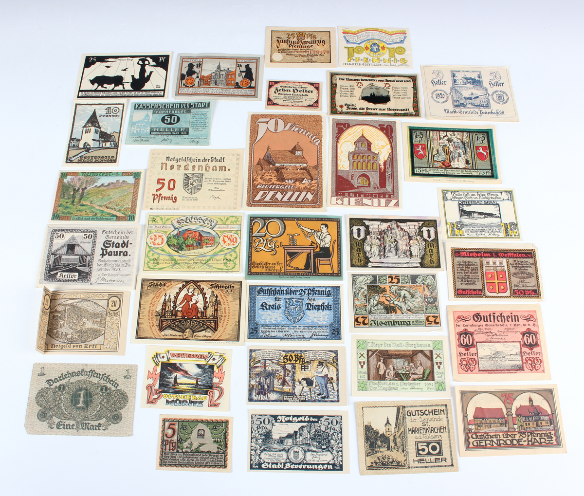 A large collection of European and world banknotes, including a group of various early 20th century German types and a large group of German notgeld or emergency money.