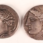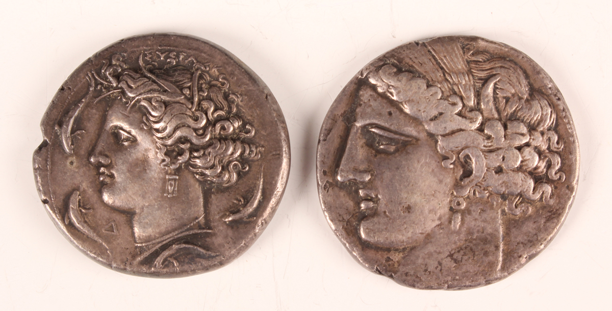 Two early 20th century white metal electrotype copies of Siculo-Punic decadrachms, probably produced as Grand Tour copies.
