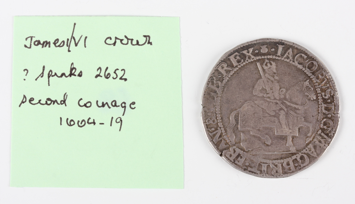 A James VI of Scotland hammered silver thirty shillings 1567-1625, English arms in first and fourth quarters, mintmark thistle, Sp 5503, weight 14.7g (good-fine).