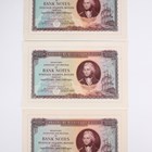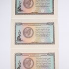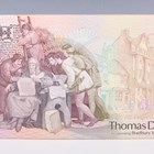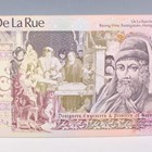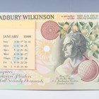 A rare Thomas De La Rue Incorporating Bradbury Wilkinson & Co Ltd advertising desk stand of A-board design, detailed 'Thomas De La Rue', ' Designers, Engravers and Printers of Security Documents...', obverse and reverse printed with designs of William Caxton and his press, printed in purple, yellow, green and orange. Note: probably issued as an advertising work to promote the International Banknote Society's 18th Annual European Congress in 1988, together with a rare Bradbury Wilkinson and Thomas De La Rue advertising desk calendar for 1988 of A-board design, detailed 'Bradbury Wilkinson', 'Designers, Engravers & Printers of all Security Documents...', obverse with portrait of Sir Isaac Newton below apple tree to the right, reverse with decorative design, printed in orange, green and brown, within original card sleeve, and a group of three mid-20th century Bradbury Wilkinson & Co Ltd advertising notes, detailed 'Bradbury, Wilkinson & Co. Ltd', 'Designers, Engravers and Printers of Bank Notes, Postage Stamps, Bonds and all Monetary Documents', each obverse with portrait vignette of Viscount Nelson to the middle right, sailing vessels at sea below, each reverse with Mercury and sea monster entwining trident to the left, all printed in brown, orange and green.