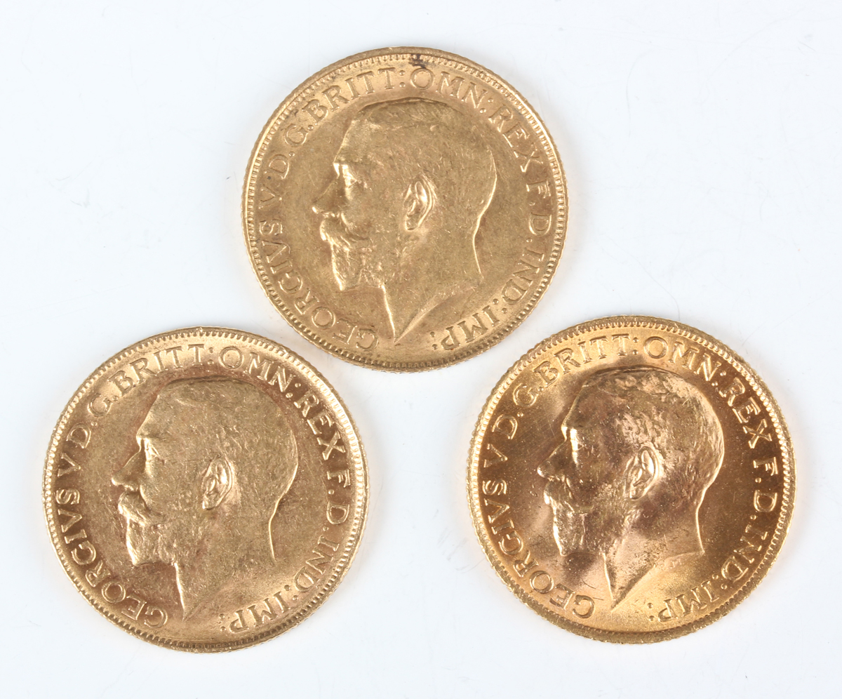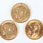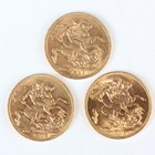 A group of three George V sovereigns, comprising 1911, 1912 Perth Mint and 1915.