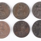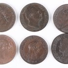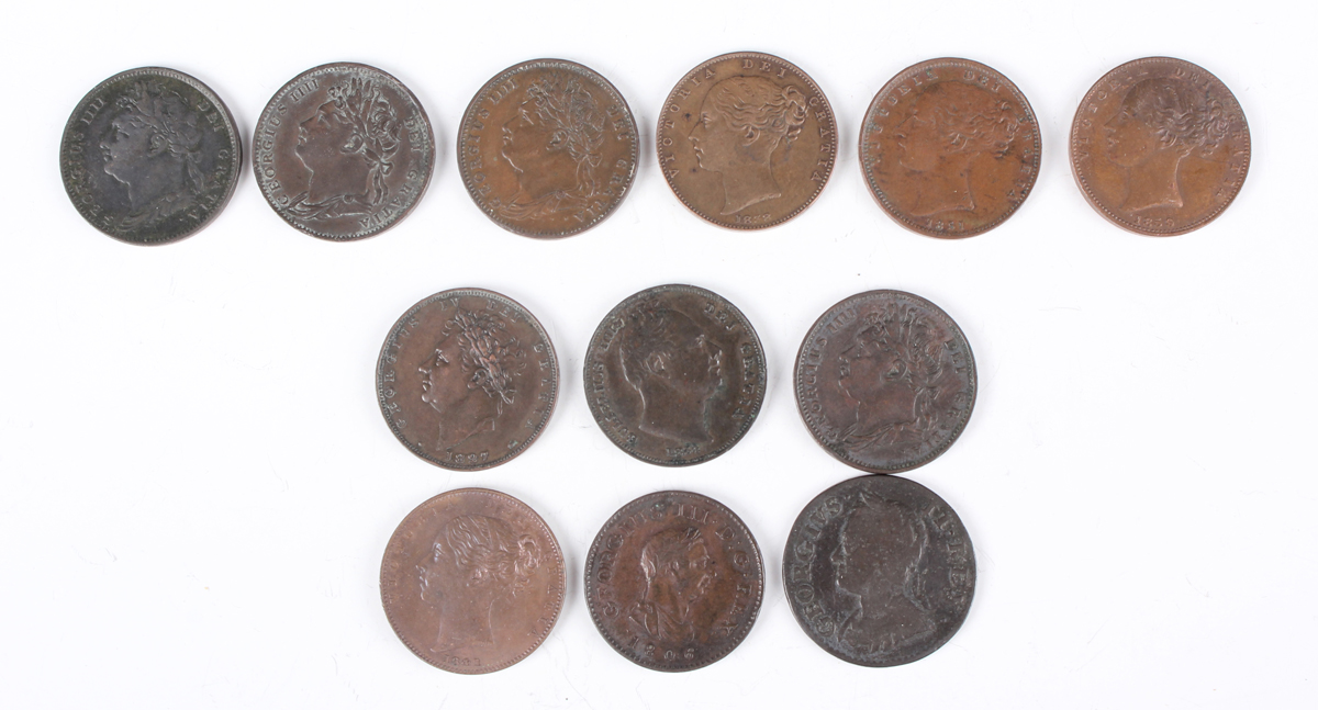 A collection of 18th and 19th century copper farthings, including George II 1754, George III 1806, George IV 1821, George IV 1827, William IV 1834 and Victoria 1841 (some good-fine-very fine).