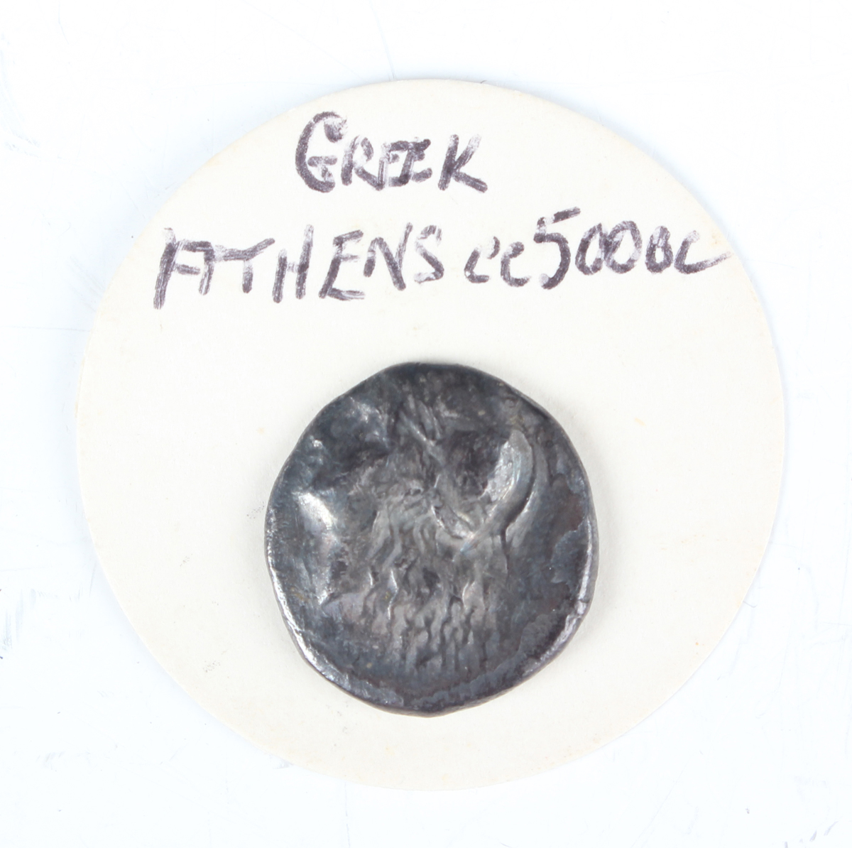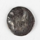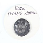An ancient Greece, Calabria, Tarentum AR drachm, circa 280-272 BC, obverse with helmeted head of Athena left, reverse with owl with wings spread, inscribed to field (dark toned, some evidence of cleaning).