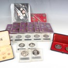 A collection of twenty-seven Britannia Commemorative Society Ltd silver medallions celebrating events and people from history, each within a slabbed plastic case, part-boxed (overall environmental damage), together with a small collection of other commemorative medallions and coin sets.