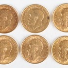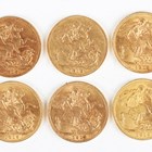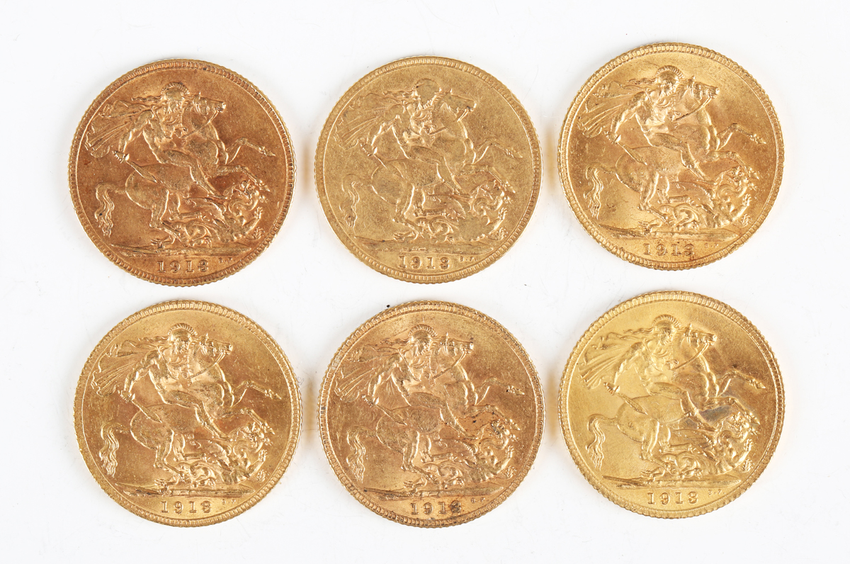 A group of six George V sovereigns, all 1913.