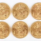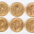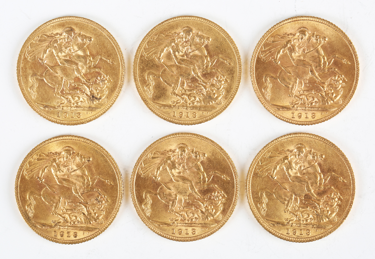 A group of six George V sovereigns, all 1913.
