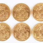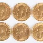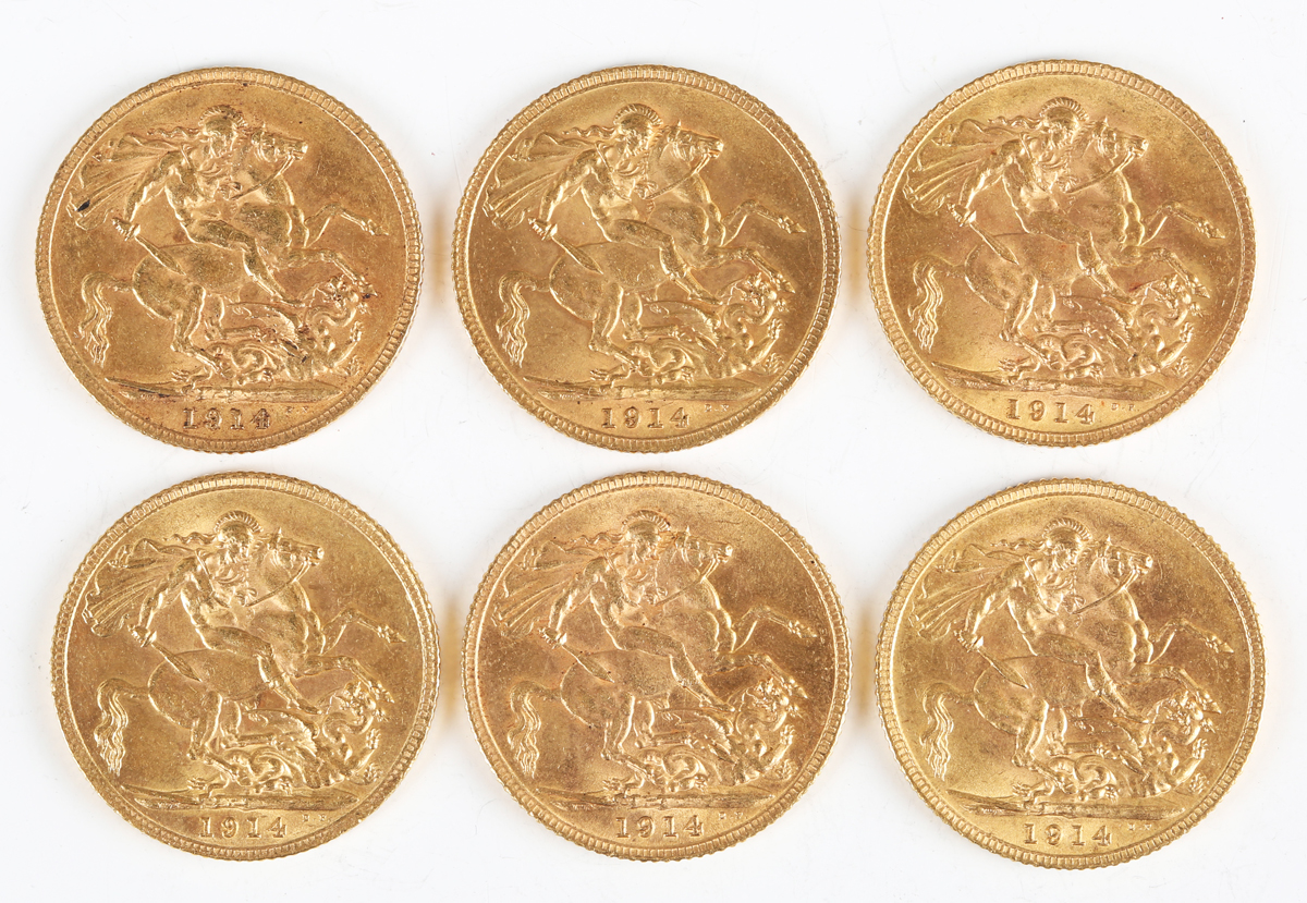 A group of six George V sovereigns, all 1914.