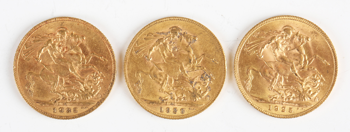 A group of three George V sovereigns, comprising two 1925 and one 1926, all South Africa Mint.
