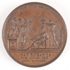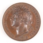 A George IV copper Coronation Medal 1821 by B. Pistrucci, obverse with laureate head left, reverse with Britannia, Scotia and Hibernia approaching the enthroned King being crowned by Victory, diameter 35mm, Eimer 1146a (extremely fine with original surface patina).