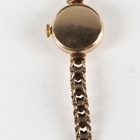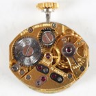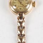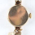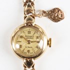 A Rotary 9ct gold circular cased lady's bracelet wristwatch with signed and jewelled movement, the signed gilt dial with Arabic numeral and baton hour markers, the heart shaped link bracelet with foldover clasp, London 1956, total weight 17.4g, case diameter 1.8cm, total length 17.6cm.