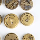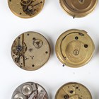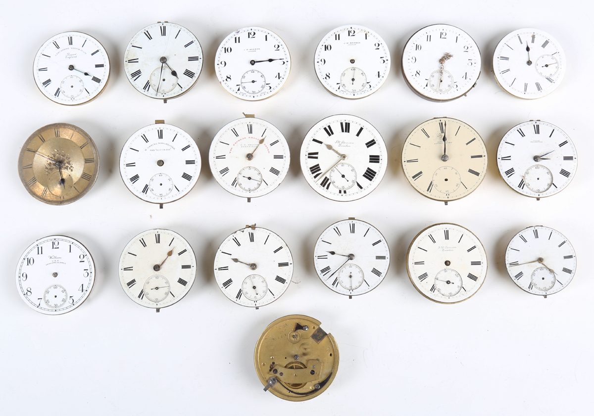 A group of pocket watch movements and dials, including some signed 'J.W. Benson London'.