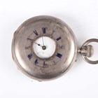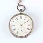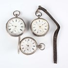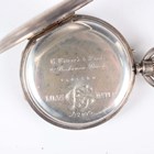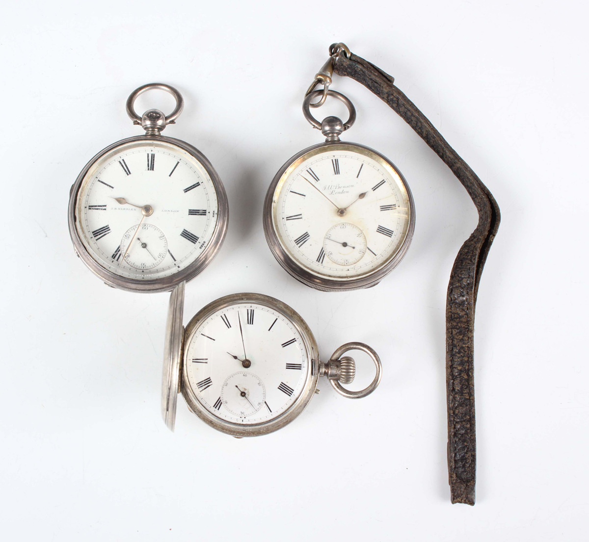 A Victorian silver cased keywind open-faced gentleman's pocket watch, the gilt three-quarter plate movement detailed 'The Ludgate Watch J.W. Benson...', the white enamelled dial with black Roman hour numerals and subsidiary seconds and signed 'J.W. Benson London', London 1887, case diameter 4.8cm, together with another silver cased gentleman's pocket watch, signed 'J.B. Yabsley London', London 1890, case diameter 5cm, and a plated half-hunting cased gentleman's pocket watch, case diameter 4.5cm.