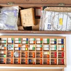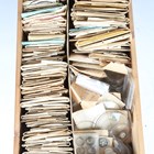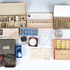 A large collection of watchmaker's parts and accessories, including a large quantity of pocket watch and wristwatch crystals/glasses, mainsprings, gilt and blued steel watch hands and a few watch movements, together with five Lorus plastic bangle wristwatches.