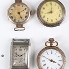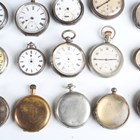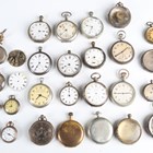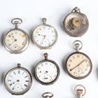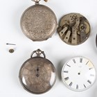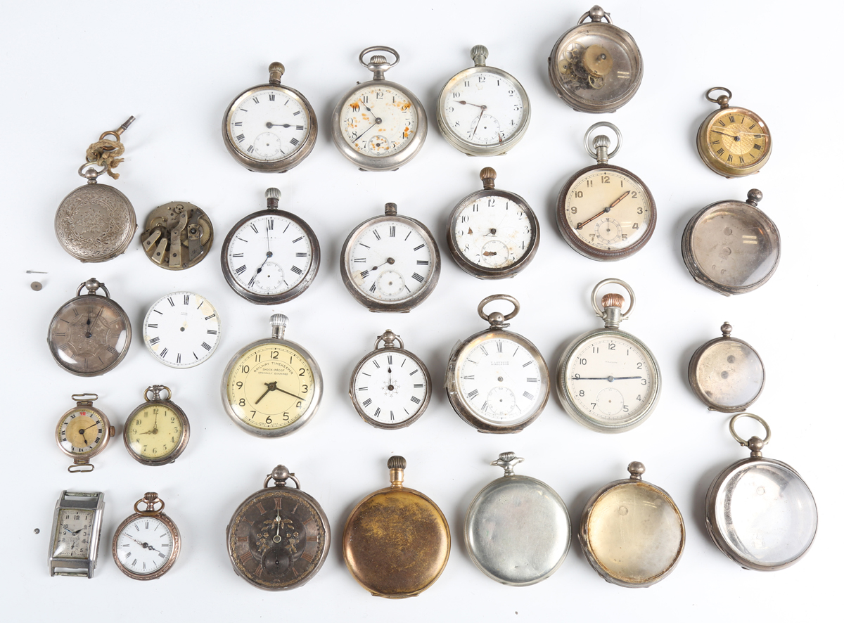 A collection of assorted pocket watches and parts, including six silver cased pocket watches, case diameters ranging from 4cm to 5.1cm, seven silver pocket watch cases, two silver cased ladies' fob watches and a Cyma steel rectangular cased gentleman's wristwatch.