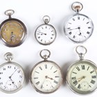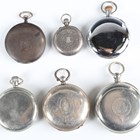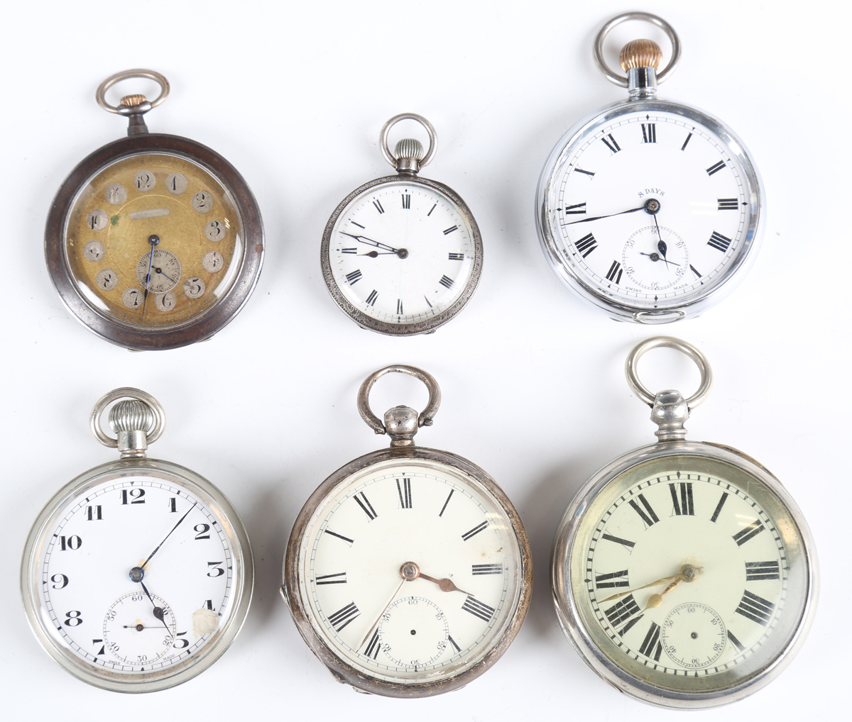 A late Victorian silver cased keywind open-faced gentleman's wristwatch, Birmingham 1893, case diameter 5.1cm, together with four other gentlemen's open-faced pocket watches and a silver cased lady's fob watch, case diameter 3.5cm.