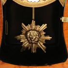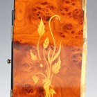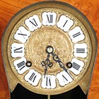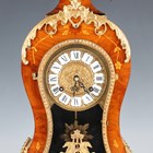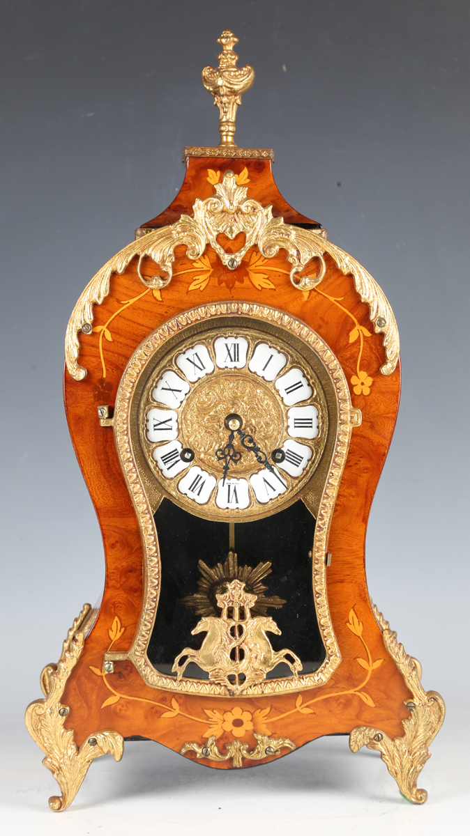 A late 20th century gilt metal mounted inlaid balloon cased mantel clock with Franz Hermle eight day movement striking on two bells, the gilt dial inset with enamel hour plaques, the baloon shaped case with gilt metal mounts and glazed door, height 43cm, with pendulum and key.
