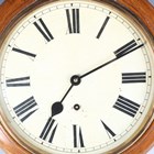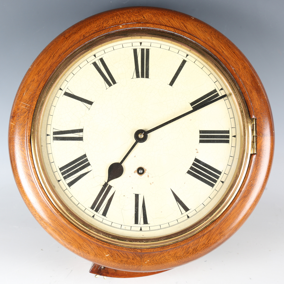 An early 20th century walnut circular cased wall timepiece, the single train movement stamped 'W & H Sch' (Winterhalder & Hofmeier), the 10-inch painted dial with black Roman hour numerals within a moulded circular surround, case diameter 33cm (lacking pendulum).
