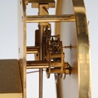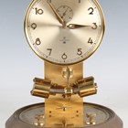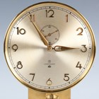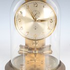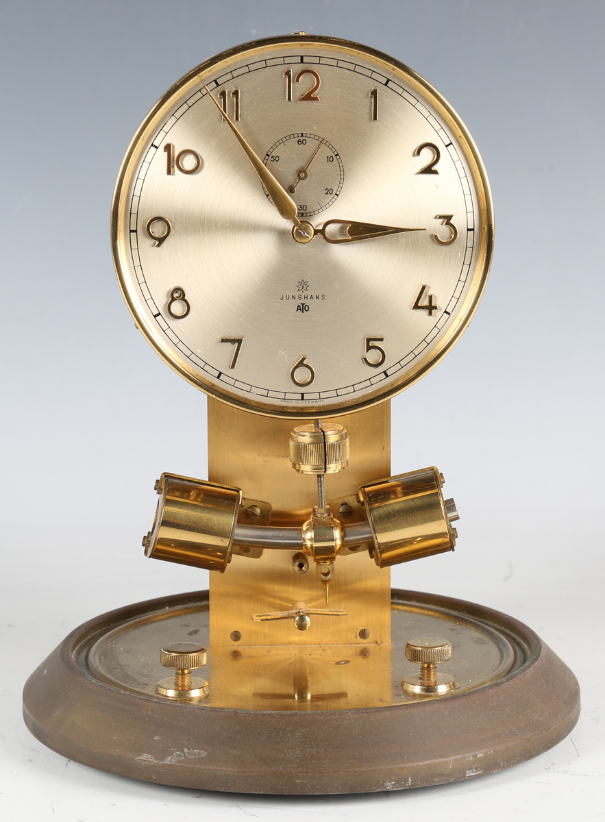 A Junghans ATO battery operated electromagnetic mantel timepiece, the signed silvered dial with subsidiary seconds and applied gilt Arabic hour numerals, on a circular base with glass dome, height 27.5cm.