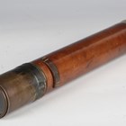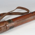 A Second World War period leather mounted brass single-draw telescope, detailed 'W Ottway & Co Ltd Ealing London No. 8005 NP45' and dated '1945' beneath MoD arrow, unextended length 34cm, with leather end caps.