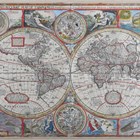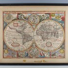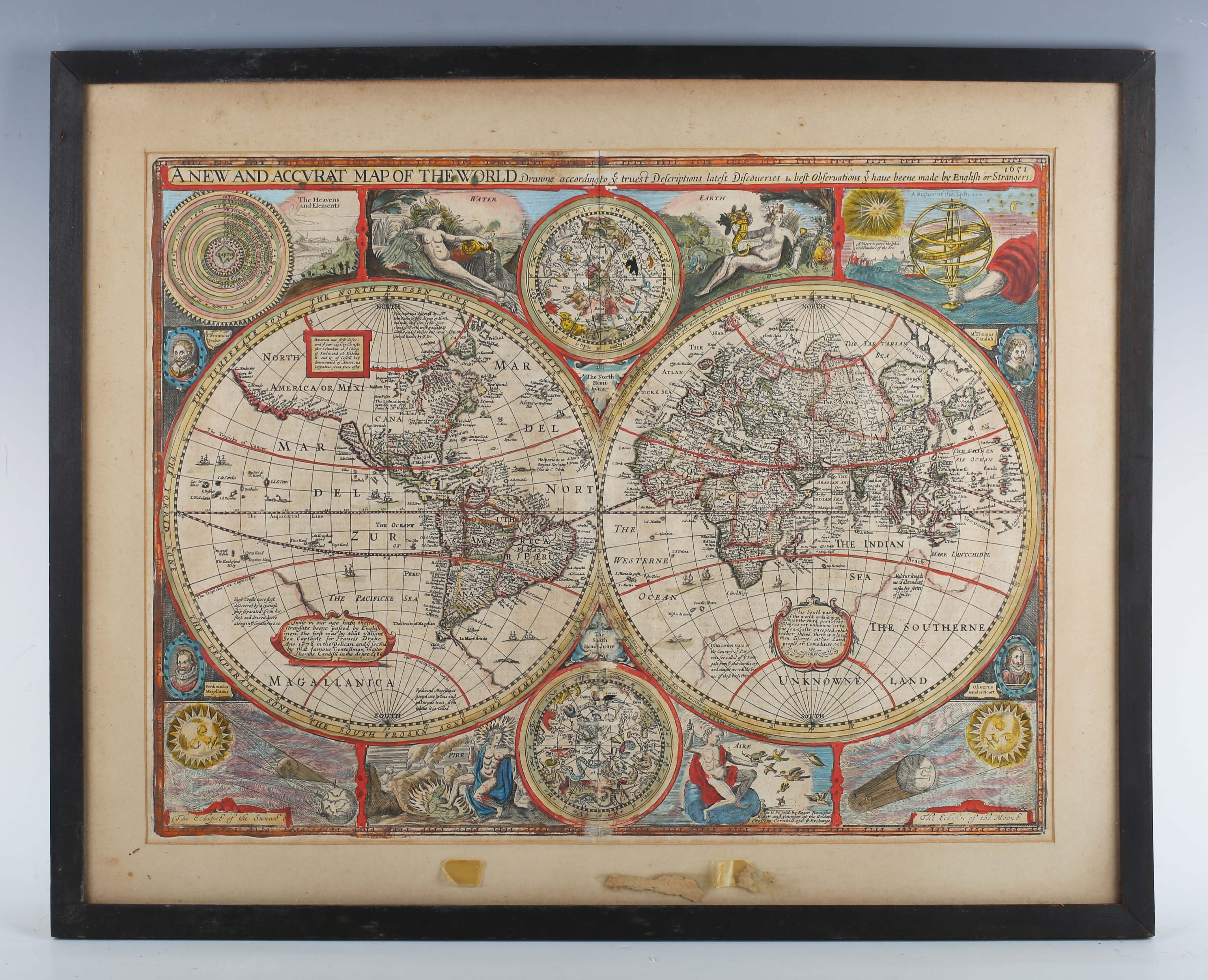 John Speed - 'A New and Accurat Map of the World', engraving with hand-colouring, originally published 1651, 40cm x 52.5cm, within a black frame.