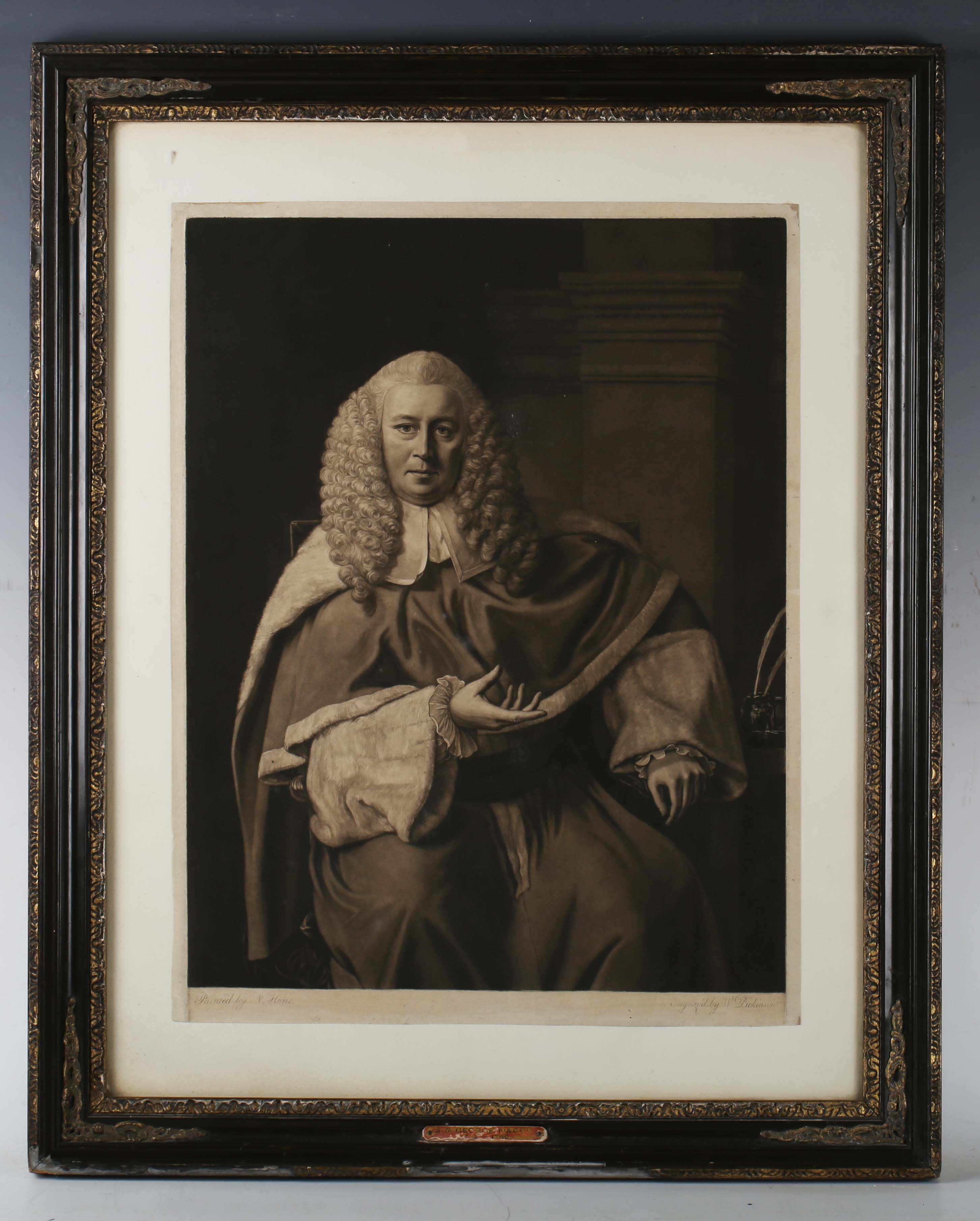 After Nathaniel Hone - Portrait of Sir George Nares, mezzotint by W. Dickenson, c.1780, 48cm x 37cm, within a Hogarth style frame.