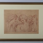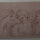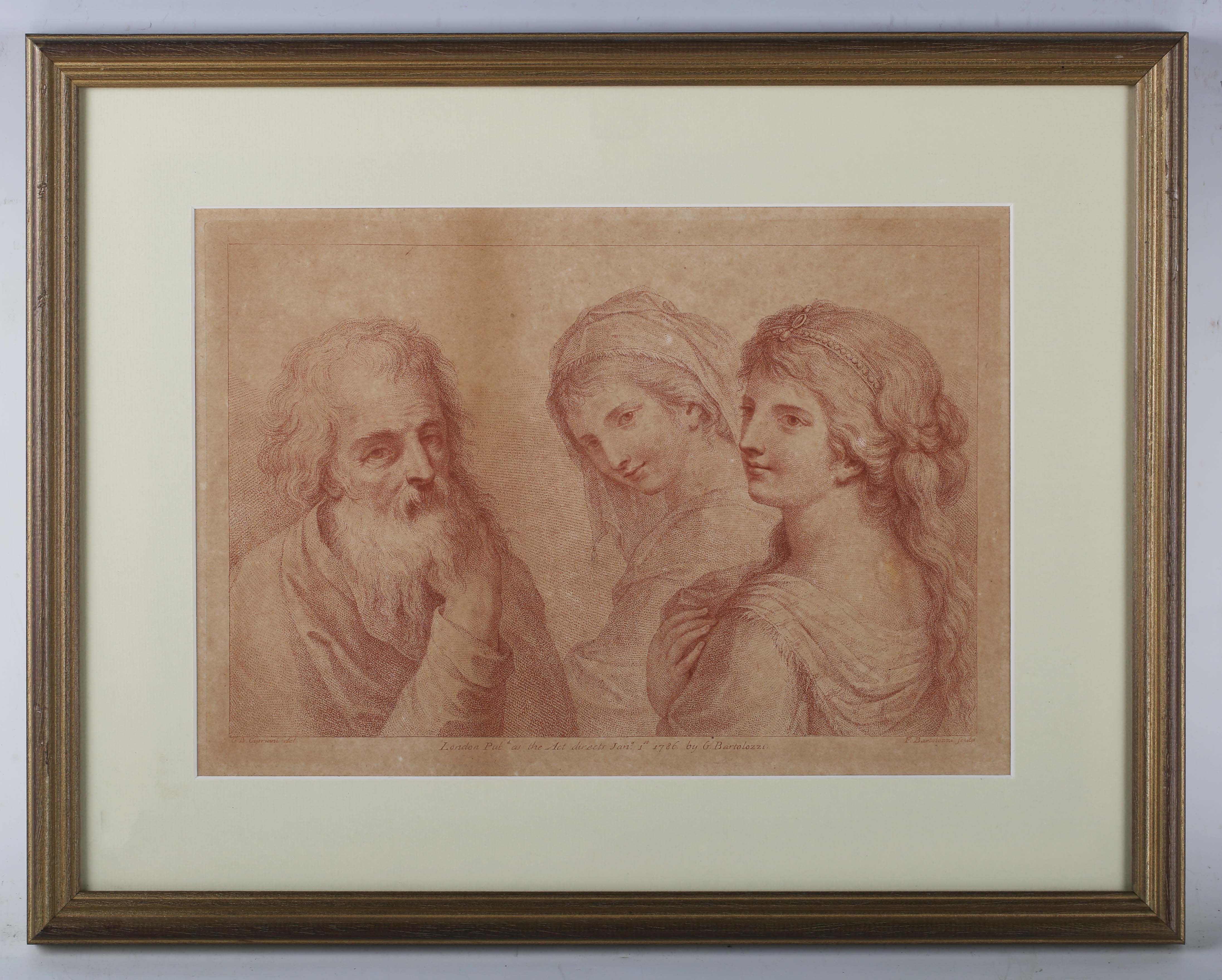 After C.B. Cipriani - Bearded philosopher with attendant sibyls; Group of youths in classical costume, a pair, sanguine stipple engravings by Francesco Bartolozzi, published 1786, each 22cm x 32cm, within gilt frames (2).