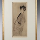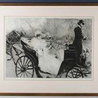 Edgar Chahine (Austrian 1874-1947) - ‘La Promenade’, etching, signed lower left, p.46cm x 66cm, together with ‘Demoiselle au Tennis’, etching by the same hand, signed, p.38cm x 15cm, both within gilt frames (2).