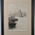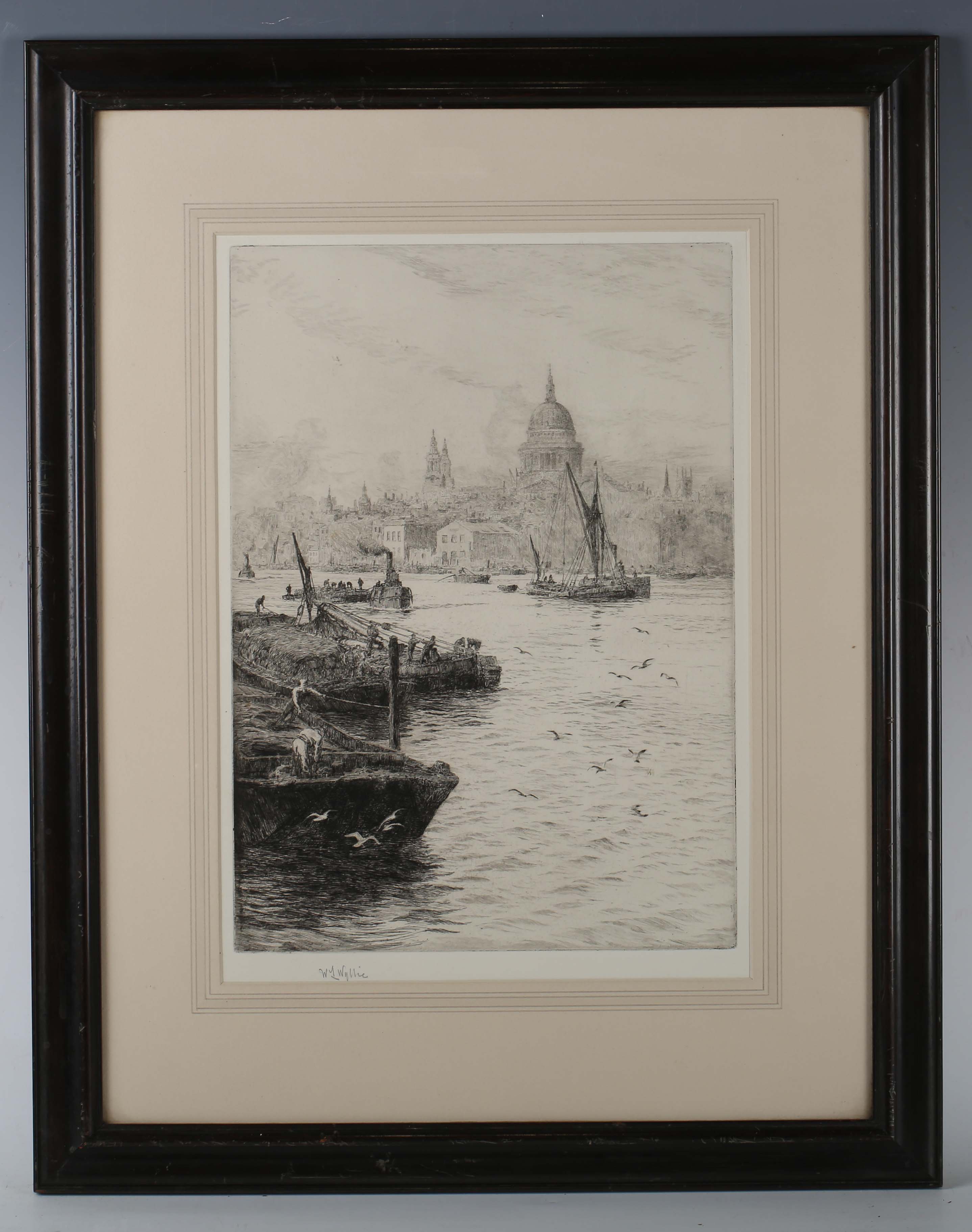 William Lionel Wyllie (British 1851-1931) - St Paul's from the South Bank, etching, signed in pencil lower left, p35cm x 25cm, within a black frame.