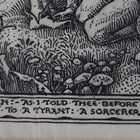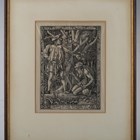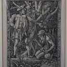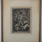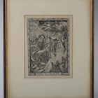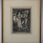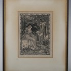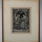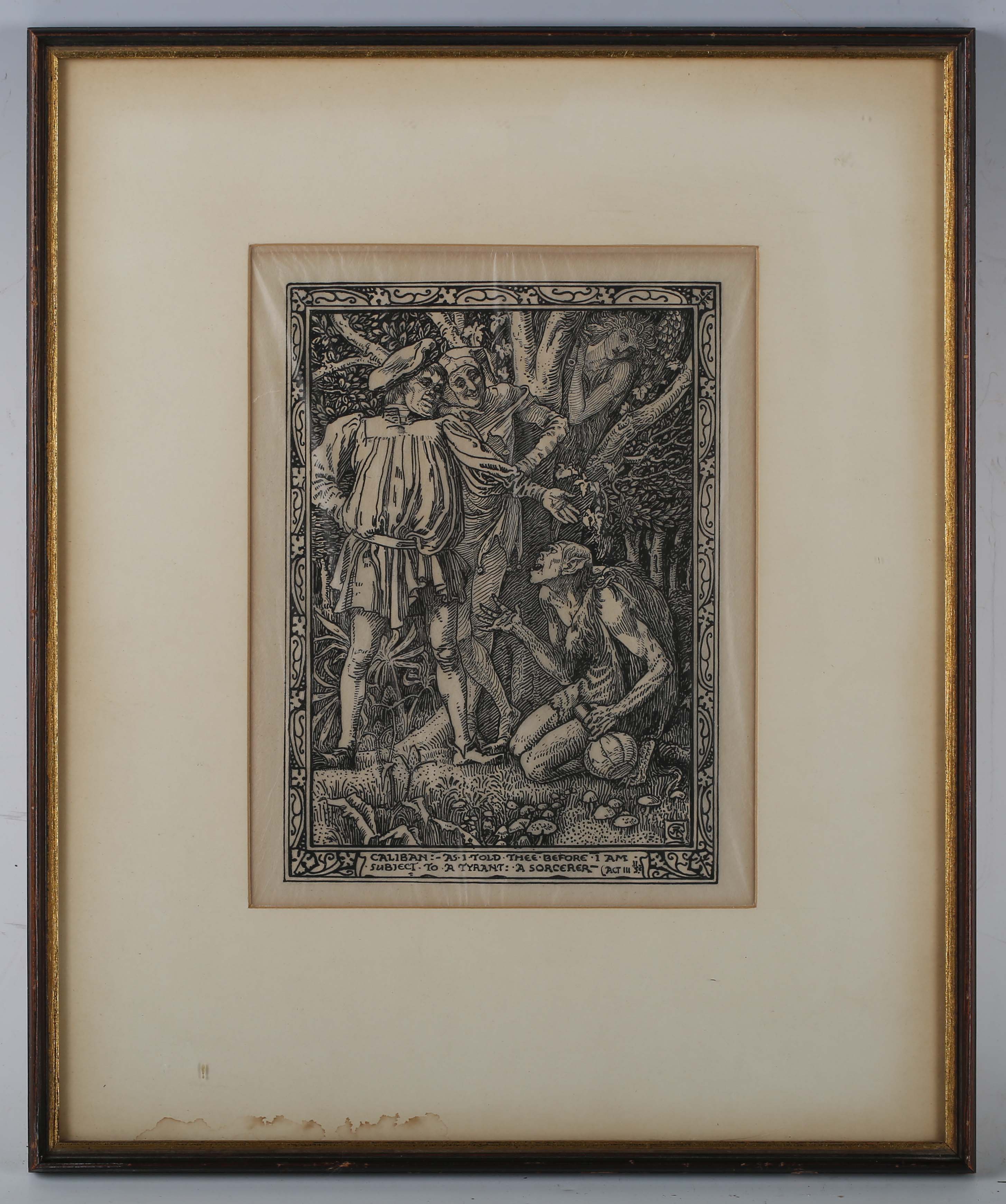 After Walter Crane - Illustrations from Shakespeare’s 'The Tempest': Prospero & Ariel; Caliban; Boatswain; Miranda & Ferdinand; Miranda; Prospero, a set of six woodcuts on thin tissue, each 21cm x 16cm, within wood and gilt frames (6).