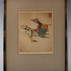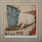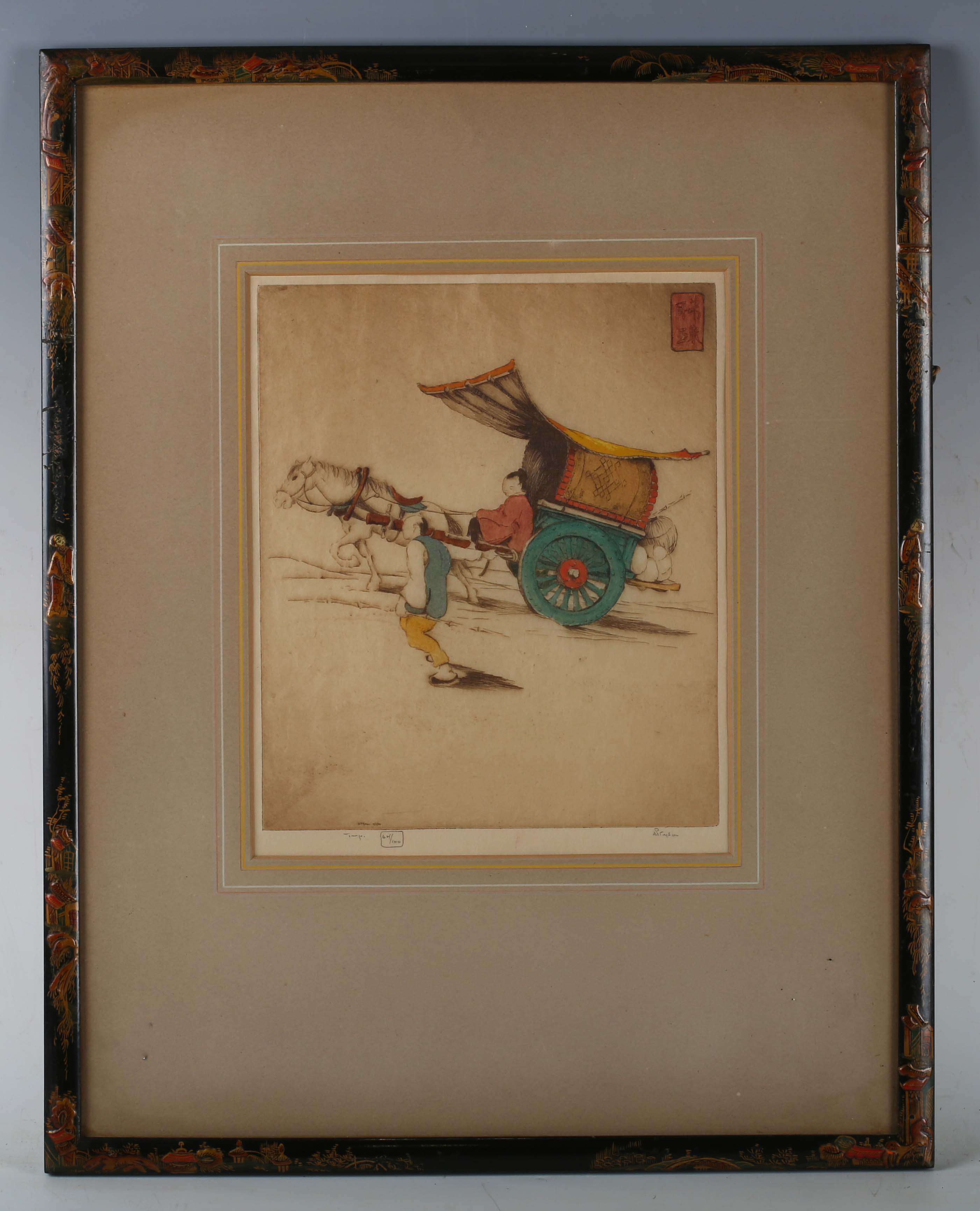 Dorsey Potter Tyson (American 1891-1969) - ‘The Pekin Cart’; ‘Loading Junks’, two, etchings with colour aquatint, both signed lower right, both numbered lower left, one 64/100, the other 41/100, the larger 25cm x 20.5cm, within Chinese style lacquer frames (2).