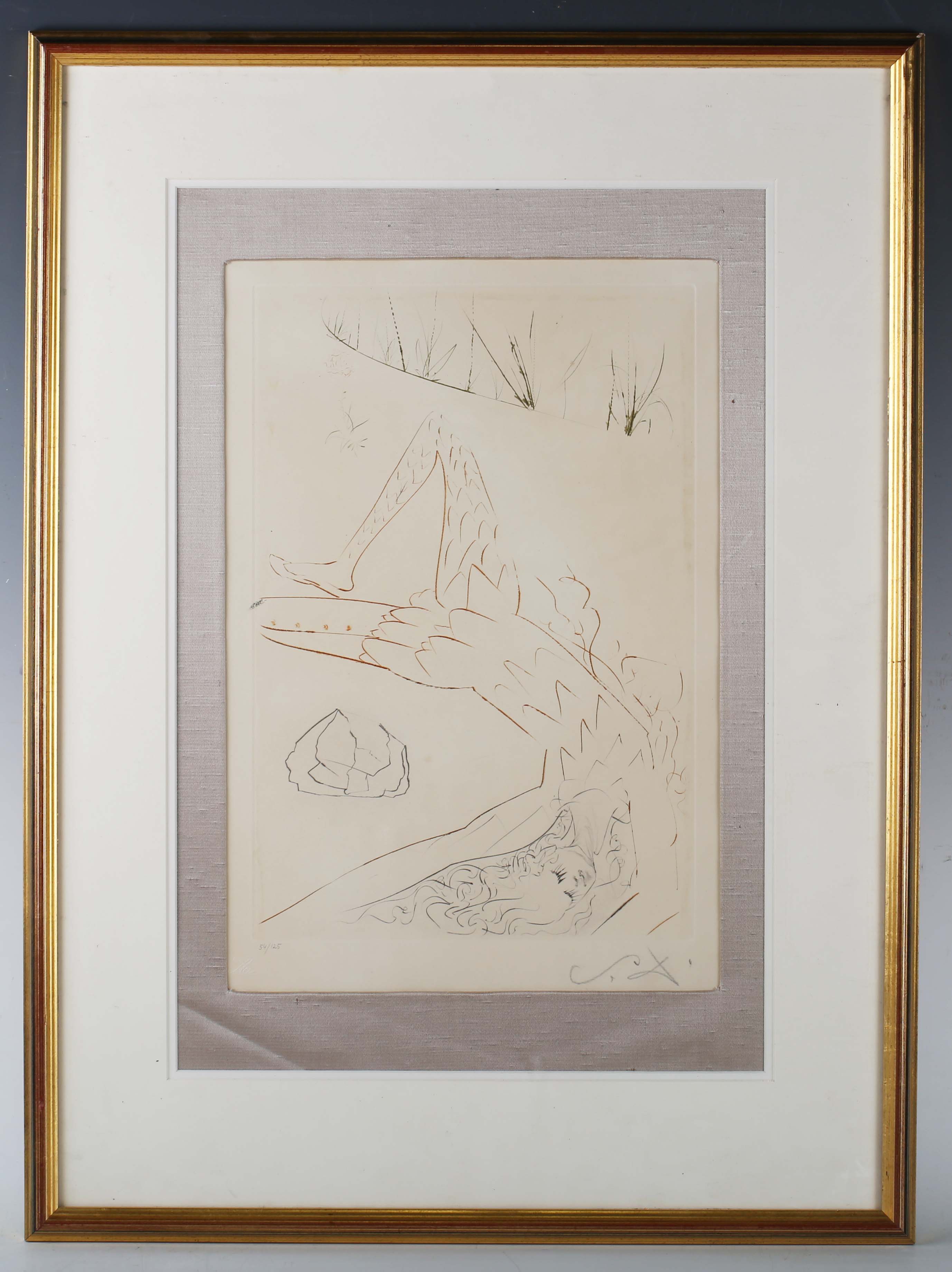 Salvador Dali (Spanish 1904-1989) - 'Tristan Wounded', colour etching, bears initials lower right, numbered 54/125 lower left, p.39cm x 26cm, within a gilt frame.