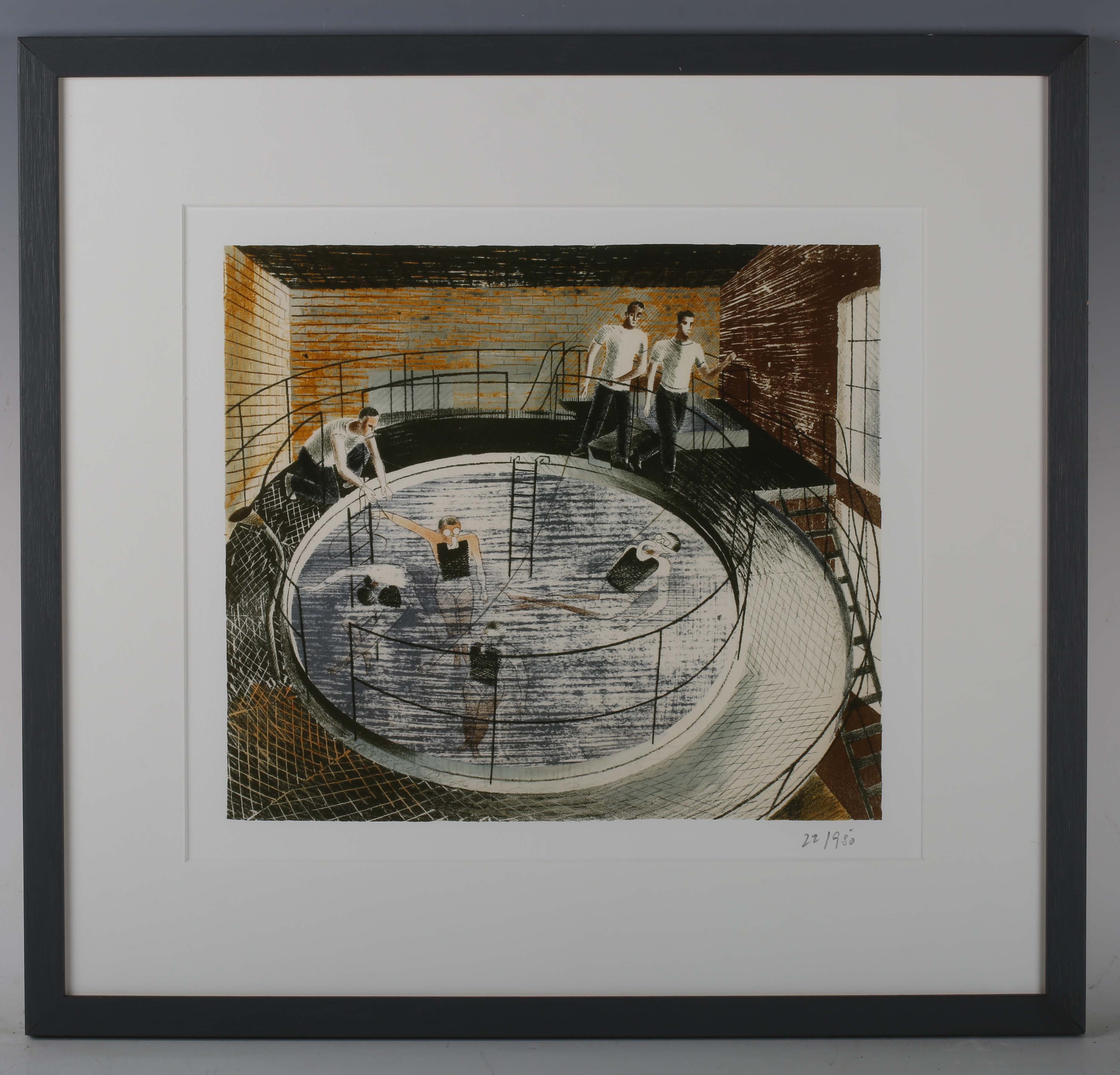 After Eric Ravilious (British 1903-1942) - ‘Testing Davis Apparatus’ from the 1941 Submarine Series, modern colour print, numbered 22/950 lower right, 28cm x 31.5cm, within a grey frame.