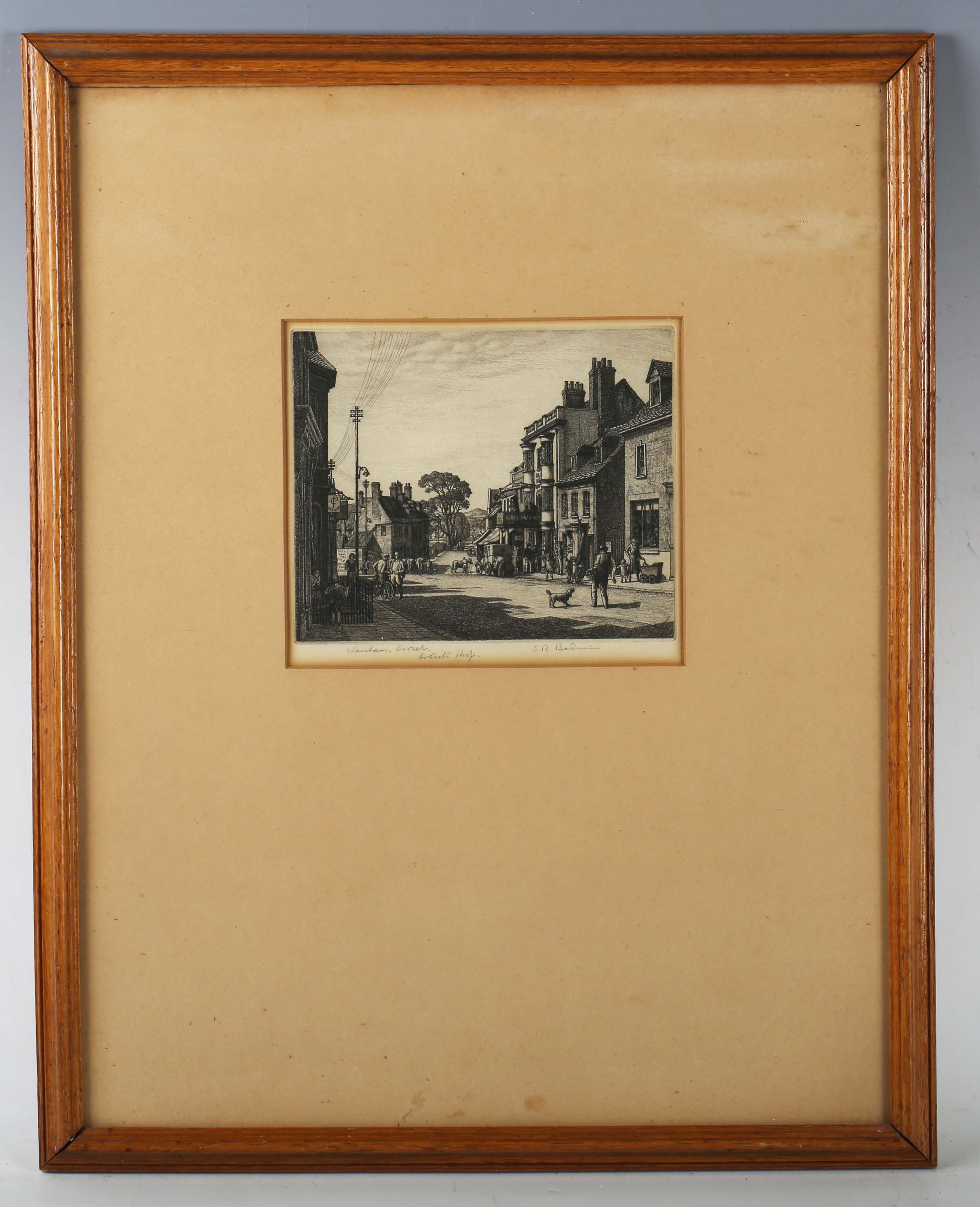 Stanley Roy Badmin (British 1906-1989) - 'Wareham, Dorset', etching, signed and inscribed 'Artist’s Proof', p.13cm x 16cm, within an oak frame.