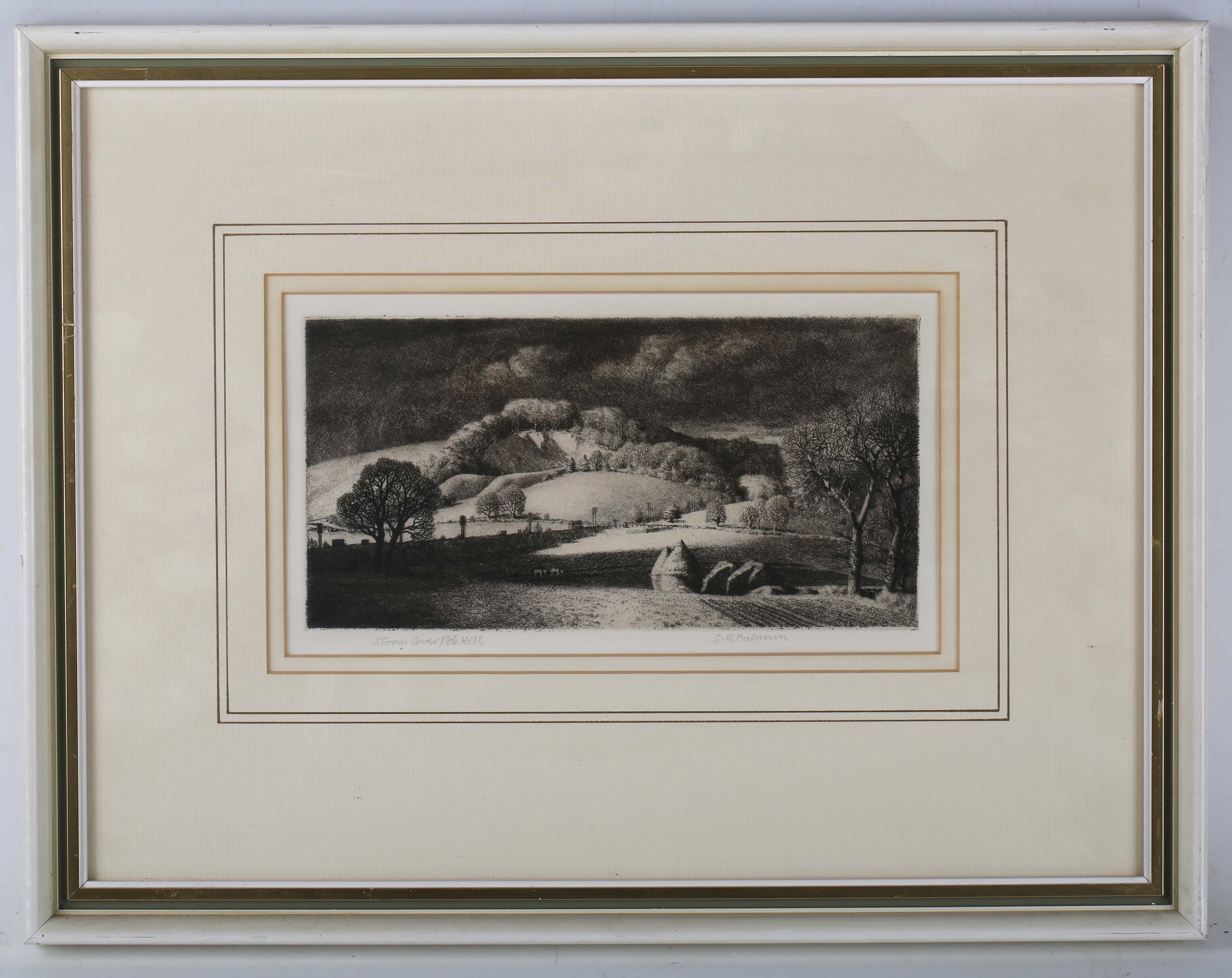 Stanley Roy Badmin (British 1906-1989) - 'Storm over Pole Hill', etching, signed and inscribed, p.11cm x 21cm, within a painted and gilt frame.