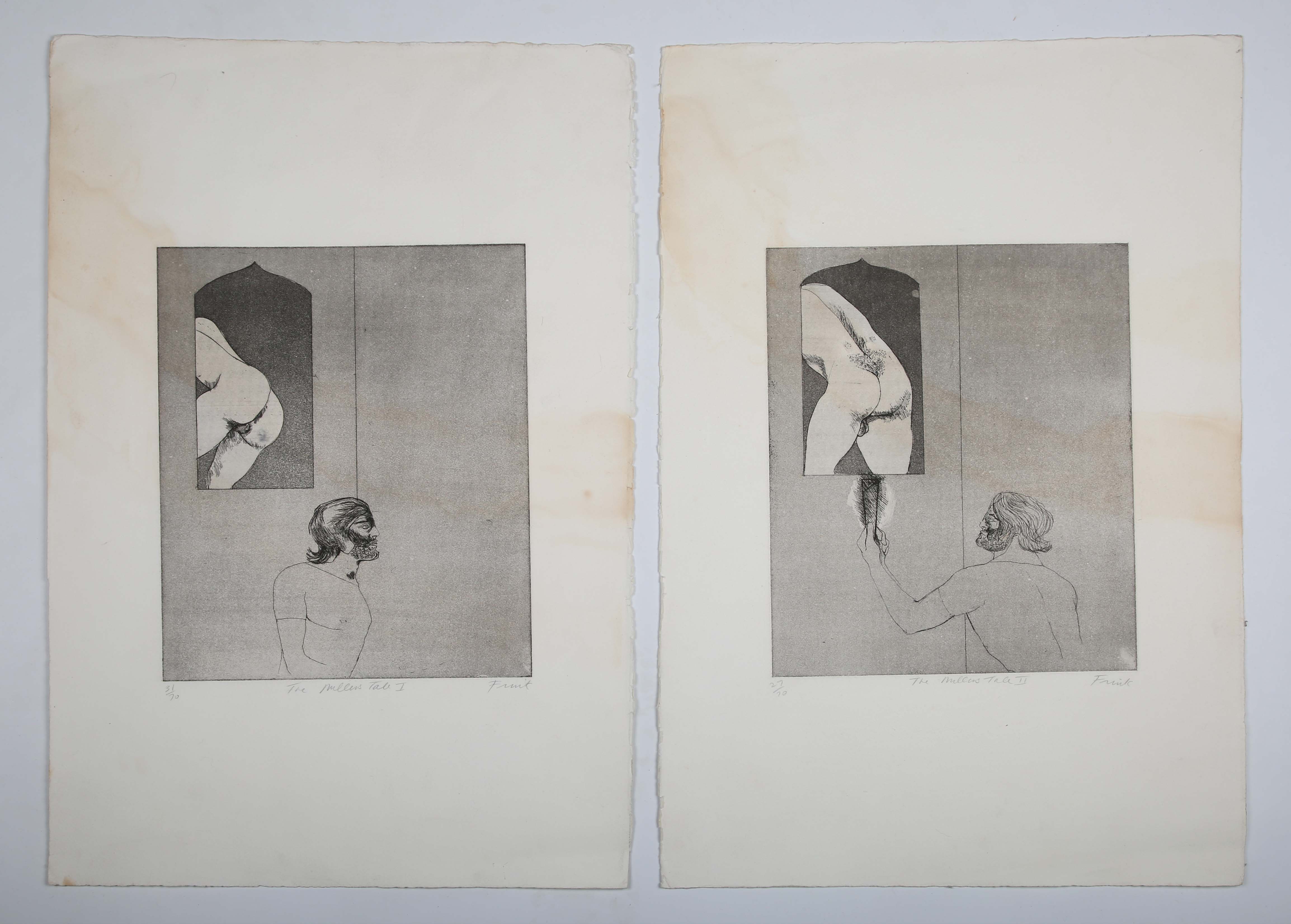 Elisabeth Frink (British 1930-1993) - 'The Miller’s Tale I'; 'The Miller’s Tale II', two, etchings with aquatint, both signed lower right, titled lower centre, numbered 31/70 and 27/70 respectively lower left, each p.30cm x 25cm, unframed.