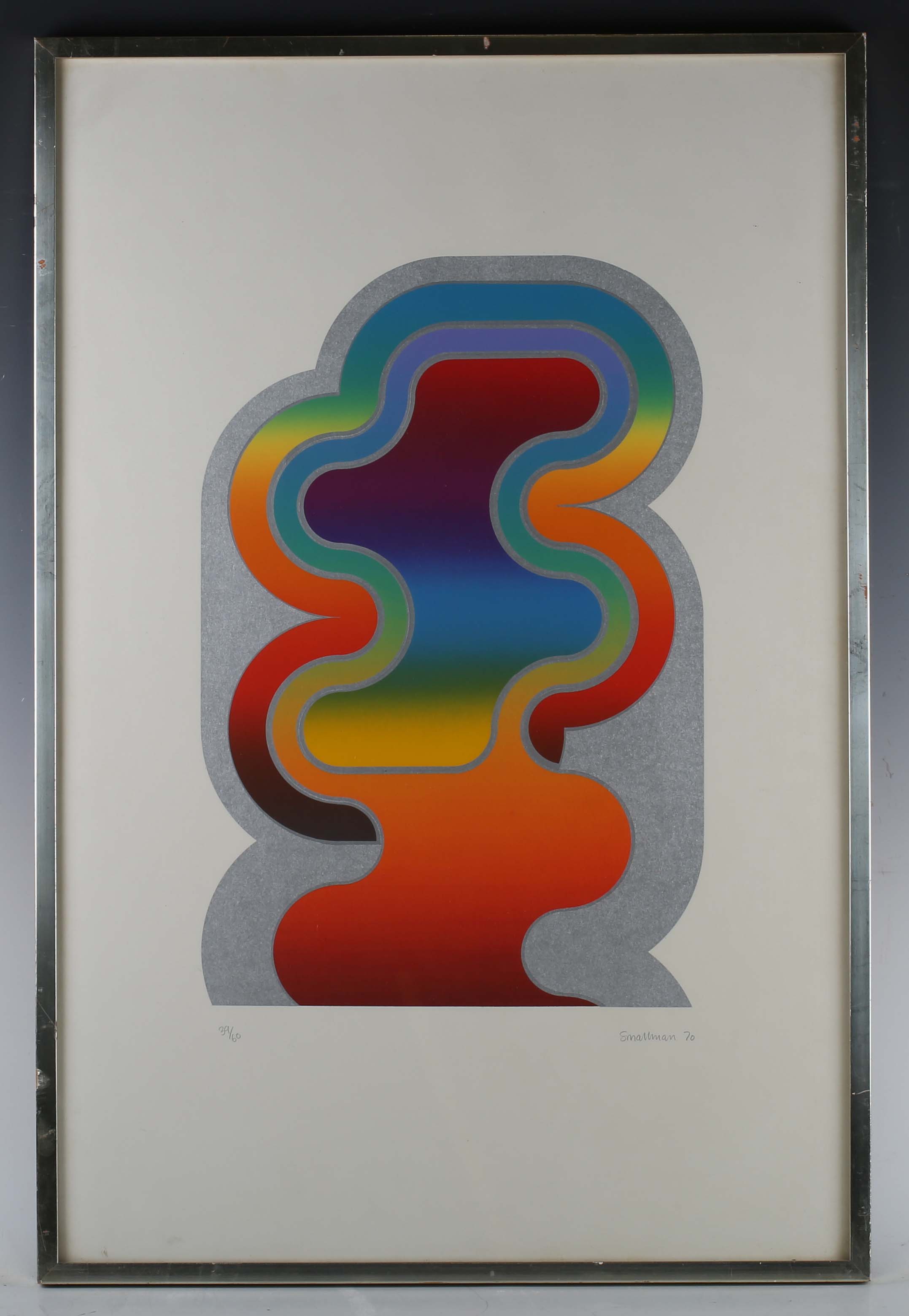 Roy Smallman (British b.1944) - Abstract, colour screen print, signed lower right, numbered 39/60 lower left, 82cm x 54cm, within a silvered frame.