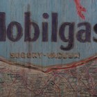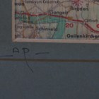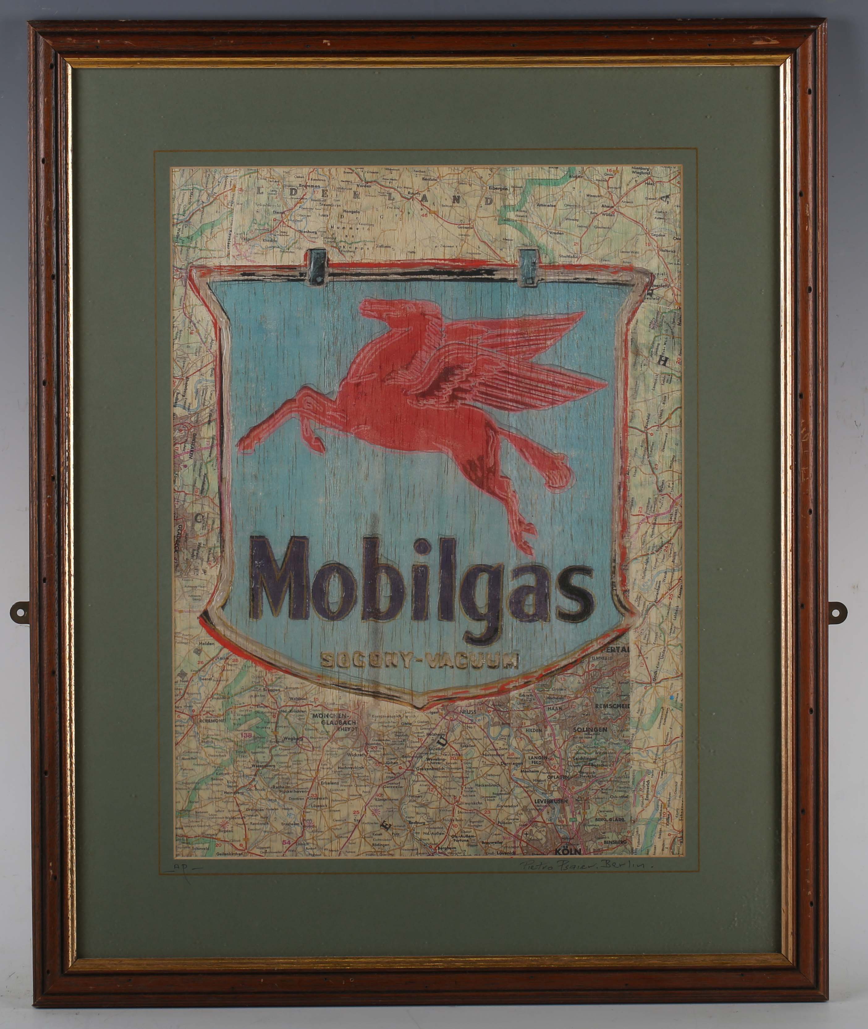 'Pietro Psaier' (purportedly Italian 1936-2004) - 'Mobilgas, Germany', screenprint on map with mixed media, signed and inscribed 'Berlin' on mount, certificate of authenticity verso, 39cm x 28.5cm, within a stained wood frame.