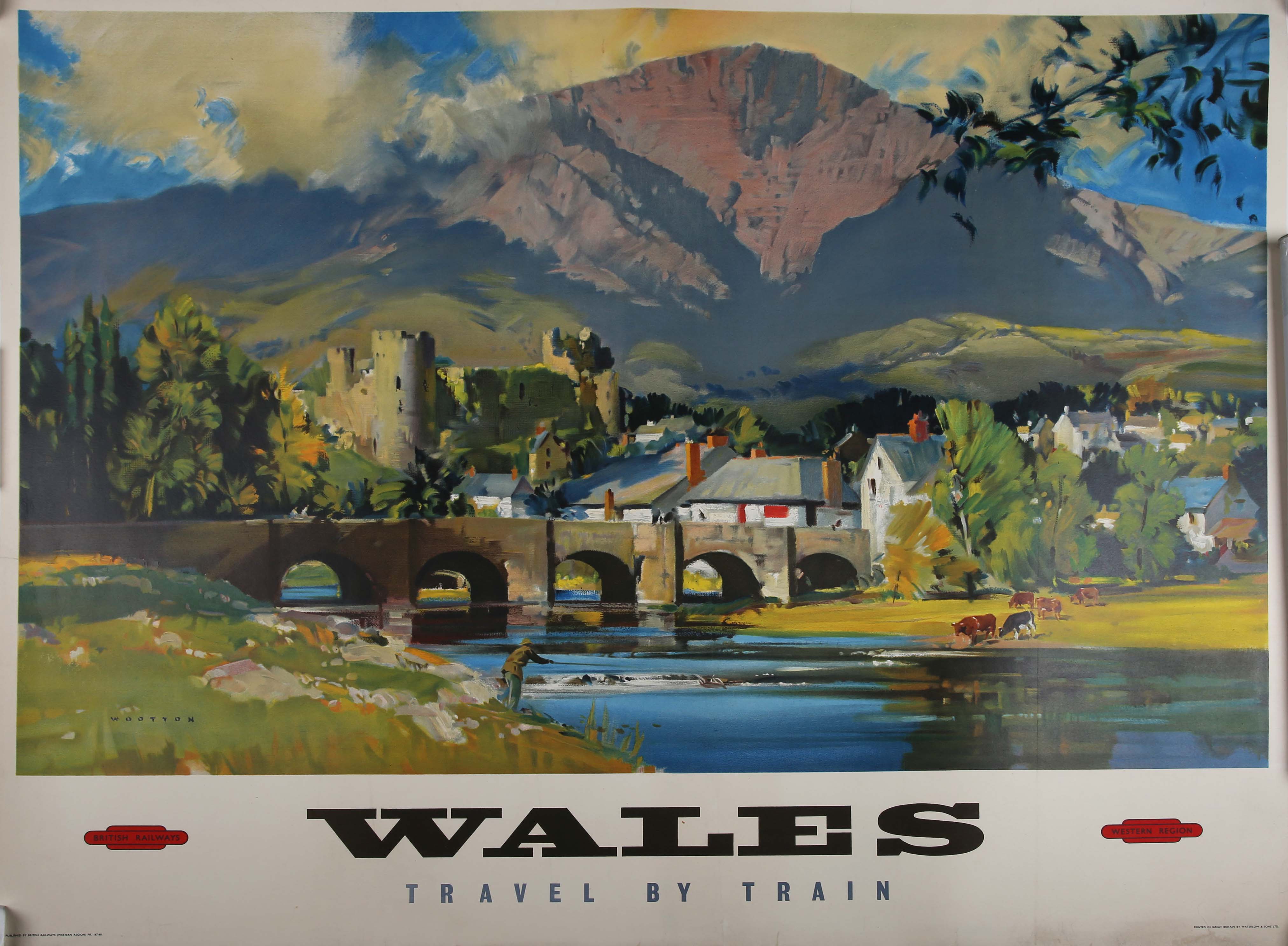 Frank Wootton (British 1911-1998) - 'Wales: Travel by Train', full-size British Railways poster, c.1955, 102cm x 126cm, unframed.